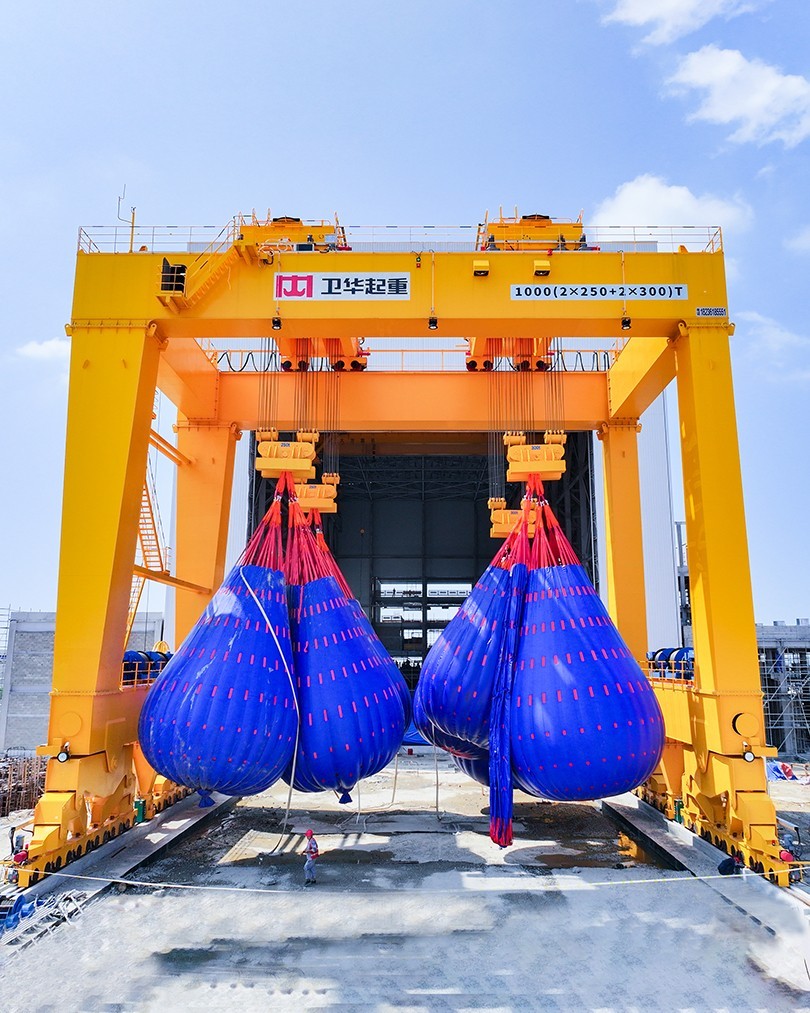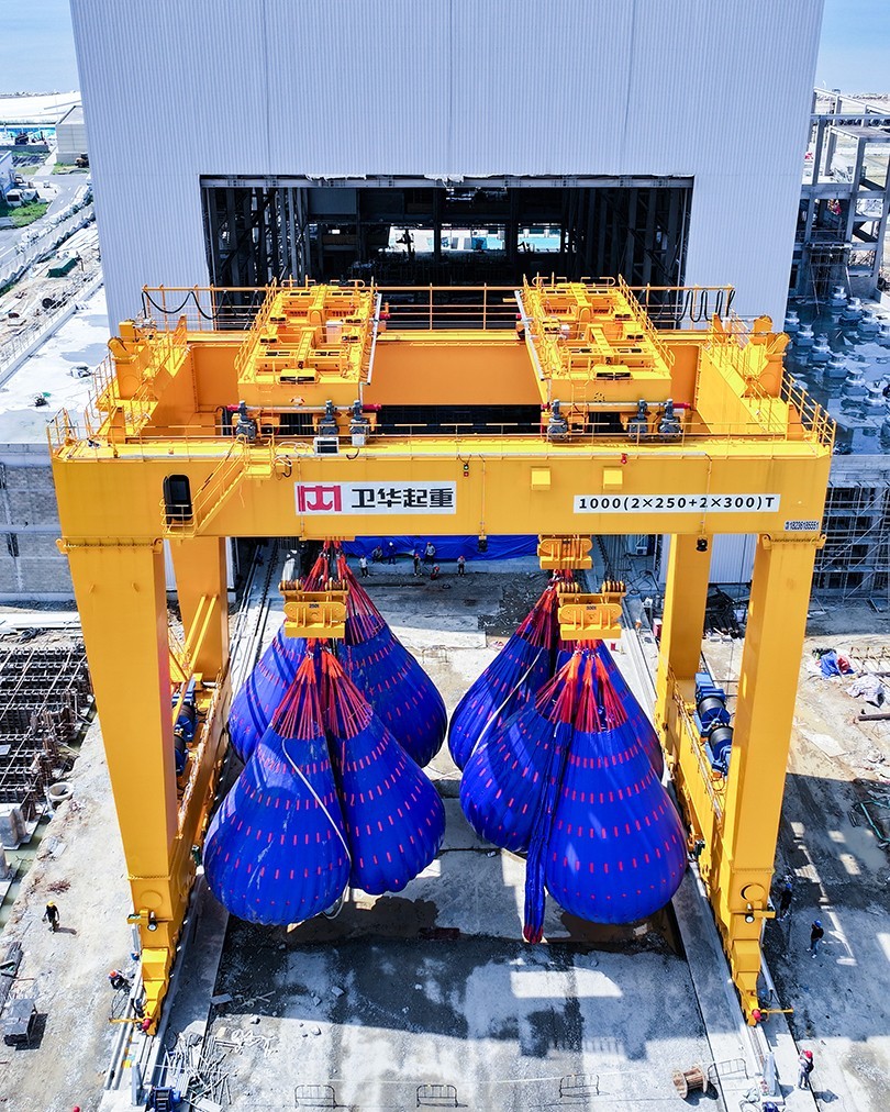 近日,在福建省福清市江阴港国家级海上风电研究与试验检测基地,河南世界杯官方网站入口1000t双主梁门式起重机顺利完成重载实验并投入运营。