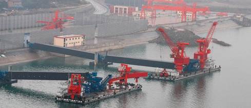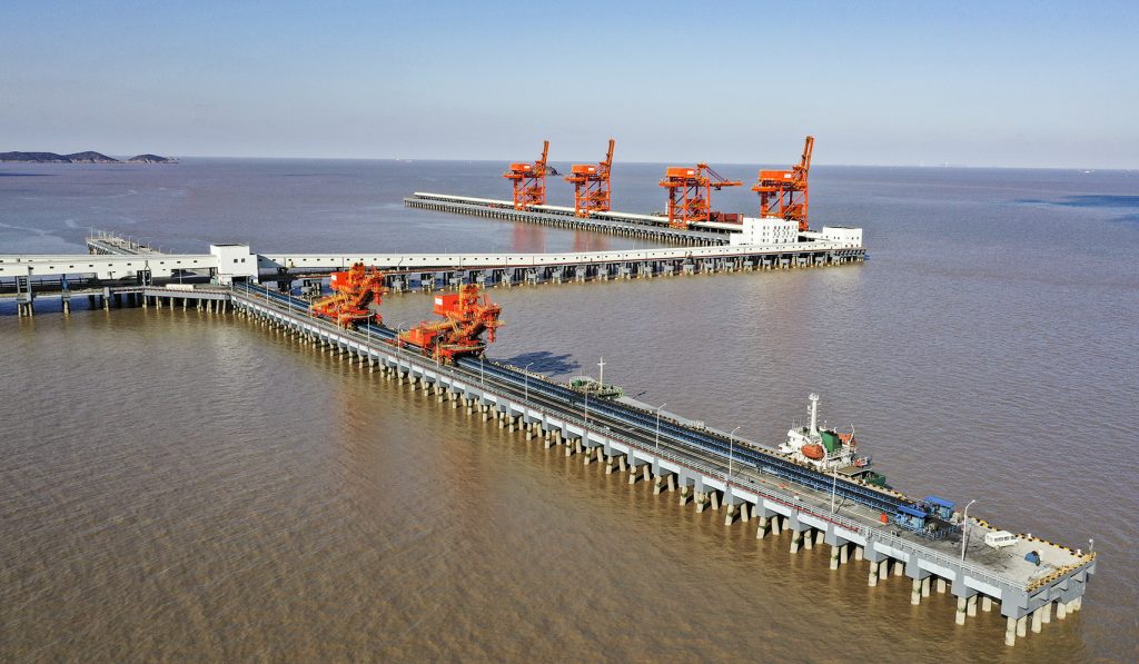 世界杯官方网站入口承接的浙江石油化工有限公司4000万吨/年炼化一体化基地配套码头工程干散货码头带式输送机及附属设备系统装置项目,包含8条皮带机及其他附属设备系统,其中4条2200mm大带宽带速5m/s,运量7680t/h,采用中部三驱动布置形式,电机功率3x800kw,单机长度950m。