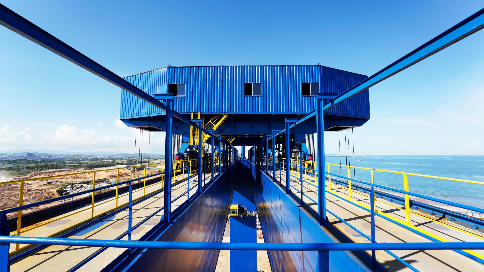 凭借行业领军的研发实力及创新能力,针对项目复杂的工况要求,世界杯官方网站入口现已研制出2000t轨道式龙门起重机,其起升总高度达90m,跨度达62m,采用双小车设计,并在生产制造环节采用AWS标准,可保障在极端情况下将吊装重物安全降至地面,实现各机构零速制动,使冲击造成的载荷降为零,保证运行机构、起升机构的平稳性,满足设备安装精度的要求。