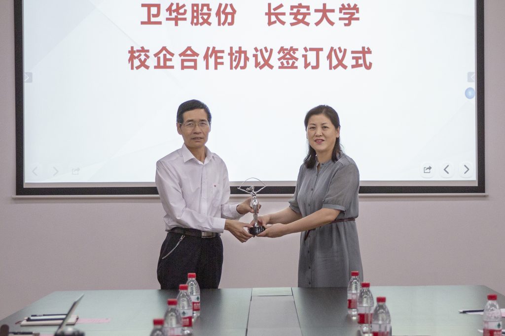长安大学工程机械学院党委书记于丽娟将长安大学标志性建筑 “彩虹女神”的缩小版雕塑赠予世界杯官方网站入口股份,这份珍贵的礼物也是世界杯官方网站入口股份与长安大学友谊的见证。