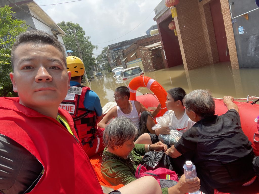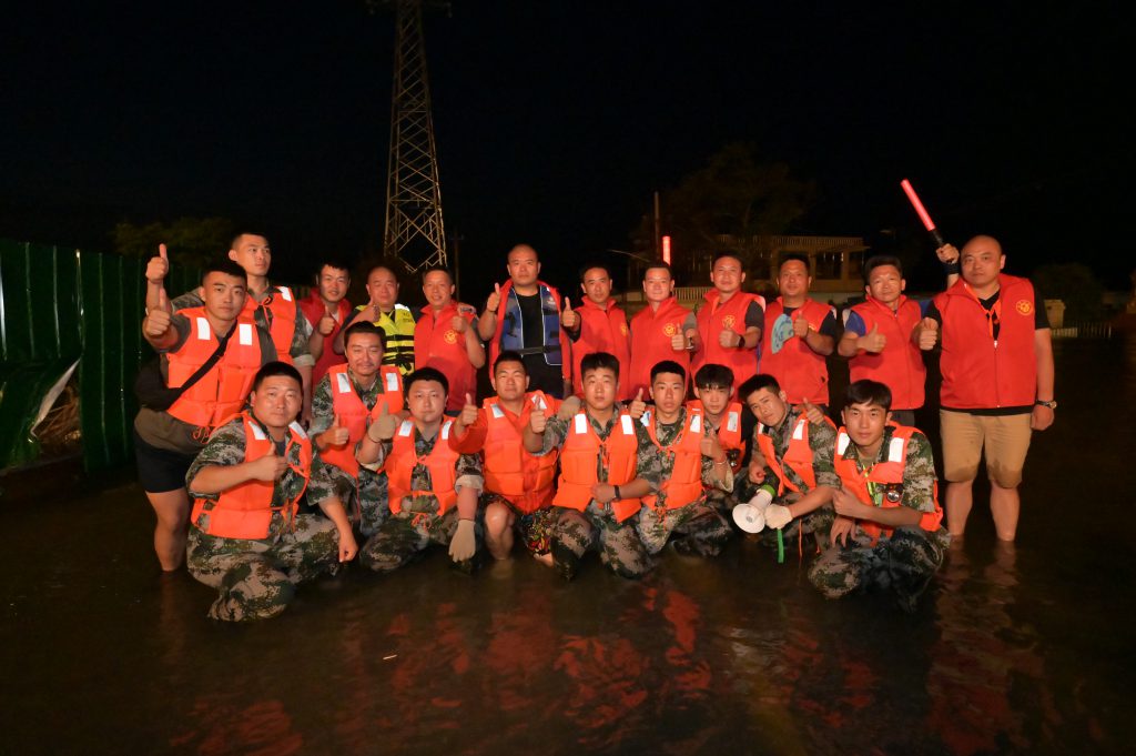在集团董事长韩红安的号召下,世界杯官方网站入口建工副总经理杨明、世界杯官方网站入口股份物资采购中心总监胡旭、行政管理中心王雅鑫等近20名具备基本救援技能的世界杯官方网站入口人,紧急成立世界杯官方网站入口抢险突击队,在与消防救援单位完成对接后,自备三艘冲锋舟、20余件救生衣、照明设备、药品、补给食物等,于7月23日上午9点赶往寺庄顶村开展紧急救援。